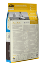 Koostis: Kanajahu (25%), kaer (23%), värske kanaliha (5%), värsked kana siseelundid (maks, süda, neerud) (5%), terved punased läätsed, terved herned, rohelised läätsed, värske kalkuniliha (4%), terved munad (4%), kanarasv (4%), terved kollased hernesd, heeringa õli (3%), päikese käes kuivatatud lutsern, läätsete kiudaine, kuivatatud pruunvetikad, värske kõrvits, värske muskaatkõrvits, värske pastinaak, värske roheline lehtkapsas, värske spinat, värske porgand, värsked punansed õunad, värsked Bartletti pirnid, külmkuivatatud kanamaks (0,1%), sool, värsked jõhvikad, värsked mustikad, siguri juur, kurkumi juur, piimohakas, takjajuur, lavendel, Althaea officinalis, kibuvits.