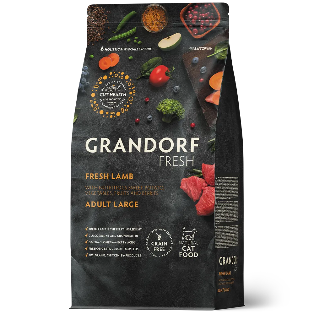 Teraviljavaba täistoit elusate probiootikumidega. Täiskasvanud suurtele tõugudele mõeldud kassidele, kellel on tundlik seedimine või allergiaoht. Värske hüpoallergeenne ja toitev lambaliha on kasulik kassi tervisele. Tänu hüpoallergeensetele koostisosadele ja teravilja- ning gluteenivabale koostisele elusate probiootikumidega on toidul suurepärane seeditavus, kõrge toiteväärtus ning see aitab teie kassil püsida terve ja rõõmsameelsena paljudeks eluaastateks.