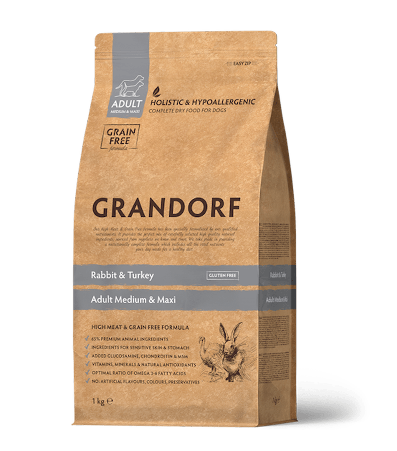 Grandorf teraviljavaba Jänese- ja Kalkuniliha täistoit keskmistele ja suurtele täiskasvanud koertele. Toit koosneb hoolega valitud hüpoallergilistest koostisosadest, mis aitavad ennetada allergilisi reaktsioone ja toidutalumatusi, samal ajal tugevdades immuunsüsteemi ja seedimist.