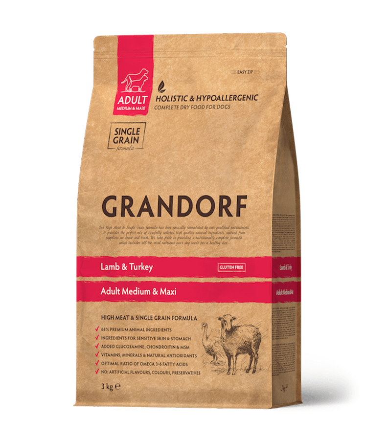 Grandorf Lamba- ja Kalkuniliha täistoit keskmistele ja suurtele täiskasvanud koertele.