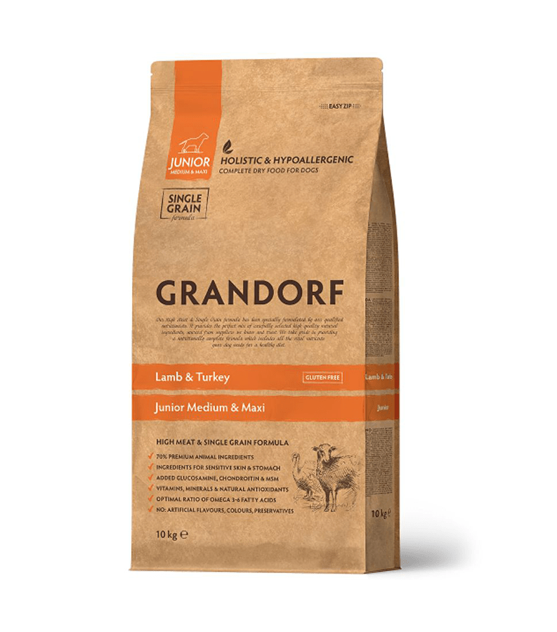 Grandorf Juunioritele toidu kasulikud omadused: 70% puhtad loomsed koostisosad, madal teravilja sisaldus, 2 loomse valgu (lammas ja kalkun) allikat, hüpoallergilised koostisosad