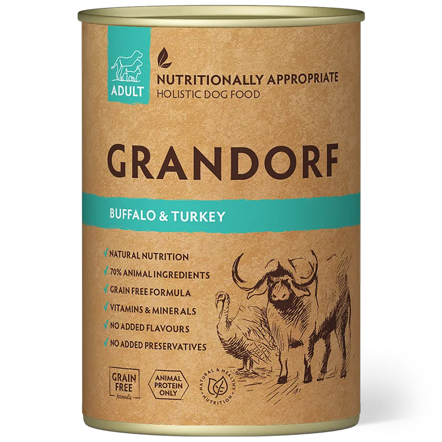 Koostis: 35% Pühvli liha, 35% Kalkuni liha, 3,5% Bataat, Mineraalid, 0,2% Kaltsium Karbonaat, 0,1% Glükosaimiin. Analüütiline koostis: Toorvalk 11,9%, Toorrasv 8,4%, Toortuhk 3,3%, Toorkiud 0,3%, Niiskus 73,1%, Kaltsium 0,12%, Fosfor 0,08%, Vitamiin D3 (3a671) – 500 IU/kg, Vitamiin E (3a700) – 62,5 mg/kg, Tsink (3b605) 37,5mg/kg, Mangaan (3b503) 7,5mg/kg, Jood (3b202) 1,25mg/kg.