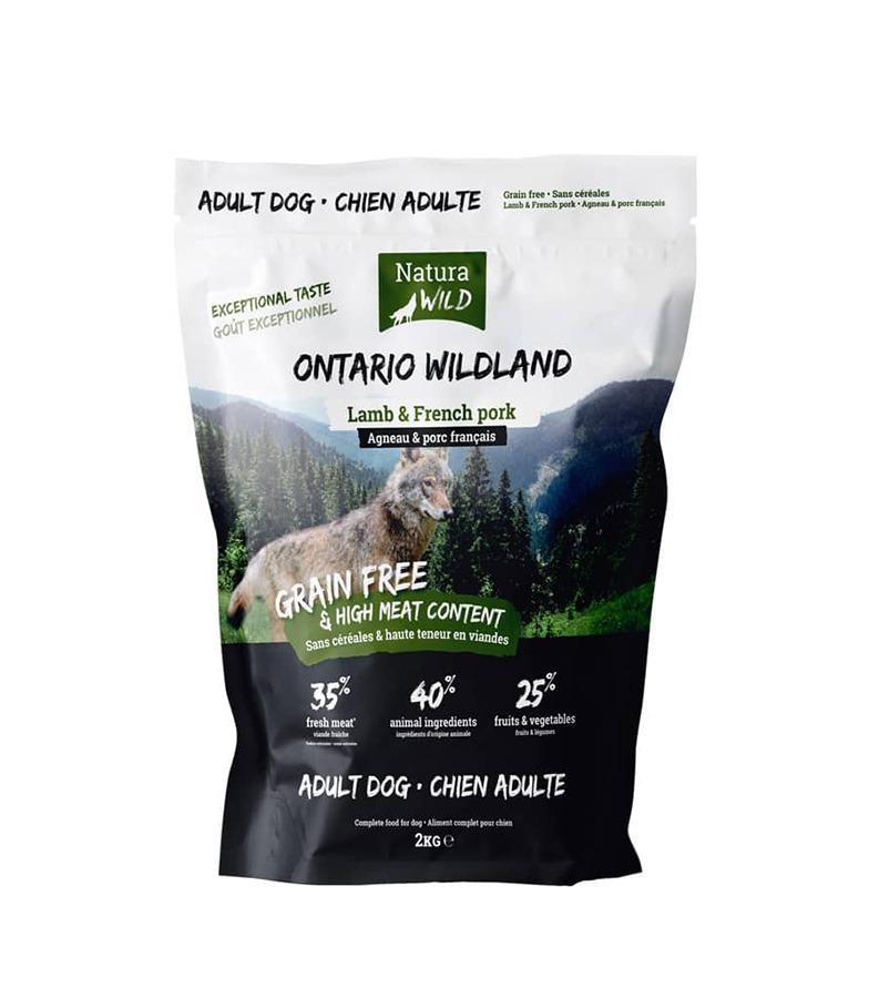 Natura Wild Ontario Wildland Täissööt täiskasvanud koertele, sobib kõikidele tõugudele. Ei sisalda kala, et sobituda nendele koertele, kellel võib esineda talumatus kala suhtes.