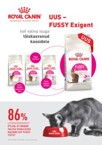 ROYAL CANIN® „Fussy“ on meie väga maitsev sari, mis on spetsiaalselt loodud just valiva isuga kassidele. Valiva isuga looma toitmine võib olla keeruline, kuid meie toit on siin lihtne lahendus. See kohandatud toit on toitaineliselt hästi tasakaalustatud ning oma erilise aroomikombinatsiooni ja krõmpsuva tekstuuriga krõbinate tõttu väga isuäratav. Energia- ja valgurikas ROYAL CANIN® „Fussy“ sobib ideaalselt täiskasvanud kassidele, kes on valiva isuga või söövad päevas vähe, sest see aitab tervislikku kaalu hoida. Meie uus toit sisaldab rohkelt valku – 40% – mis tagab, et valiva isuga kassi kõht püsib täis. Samuti toetab see kuseteede tervist ja sobib steriliseeritud/kastreeritud kassidele. Et valiva isuga kass oleks toidust rohkem huvitatud ja naudiks seda rohkem, ühendab „Fussy“ meie kolm endist „Exigent“ sarja toitu – „Savour“, „Aroma“ ja „Protein“ – üheks uueks maitsvaks tooteks: ROYAL CANIN® „Fussy“. See hoolikalt valmistatud toit sobib valiva isuga sööja vajadustega ning on äärmiselt isuäratav. Õige toiduportsjoni määramiseks järgige pakil toodud toitmisjuhendit.